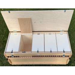 Federleichte Transportkiste, Breite: 78 cm, Tiefe: 36 cm, Höhe: 57 cm; Fachbreite 15 cm. Bild innen dient als Beispiel